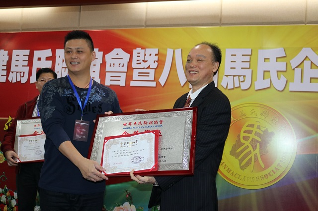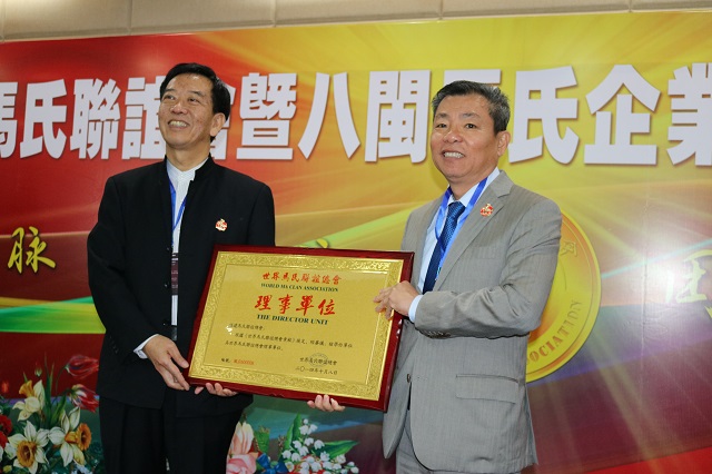 馬千雲代表世界馬氏文化資料中心贈送紀念牌盾予福建馬氏聯誼會