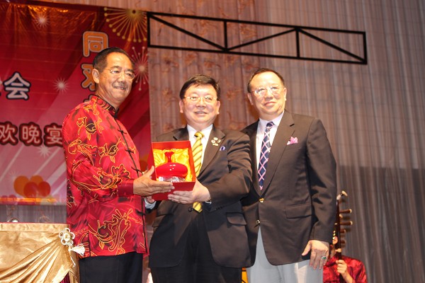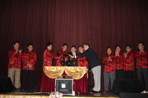 前排左三是台湾马氏总会会长马潮,左四是马来西亚马氏宗亲总会会长马纪昌,左五是署理会长马亚来,左六是台湾秘书长马世衡。